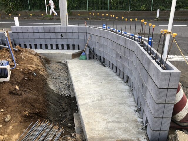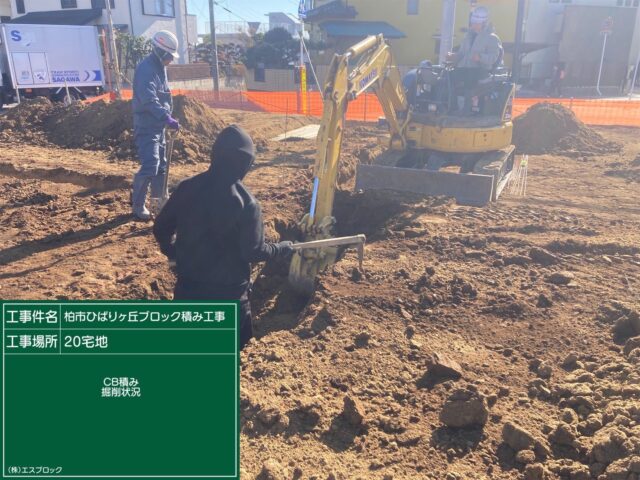 【柏市ひばりヶ丘/造成工事】CBブロック積み、基礎からコツコツ進めてます🔥