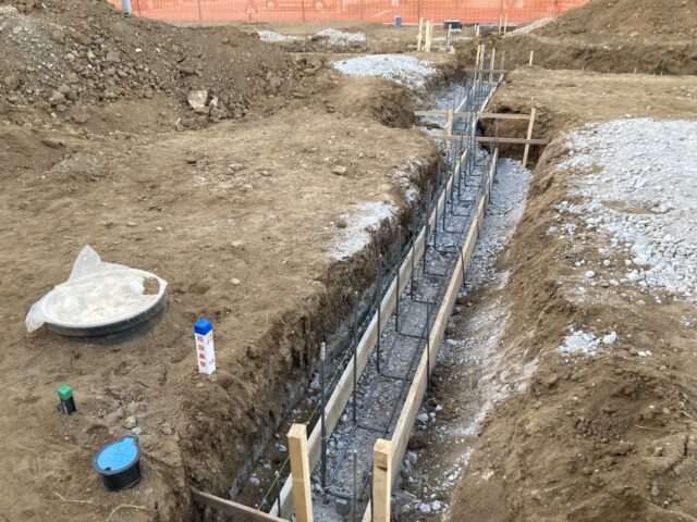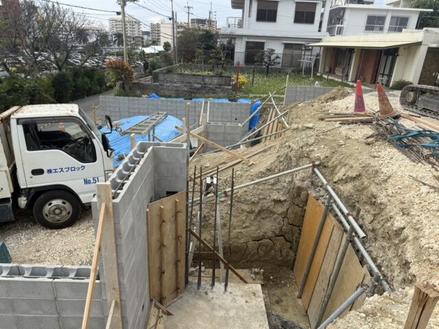 基礎となるブロック工事を進めています。掘削して、砕石を敷いて、鉄筋を組んで、型枠をセット。一つひとつ確認しながら、地道に…