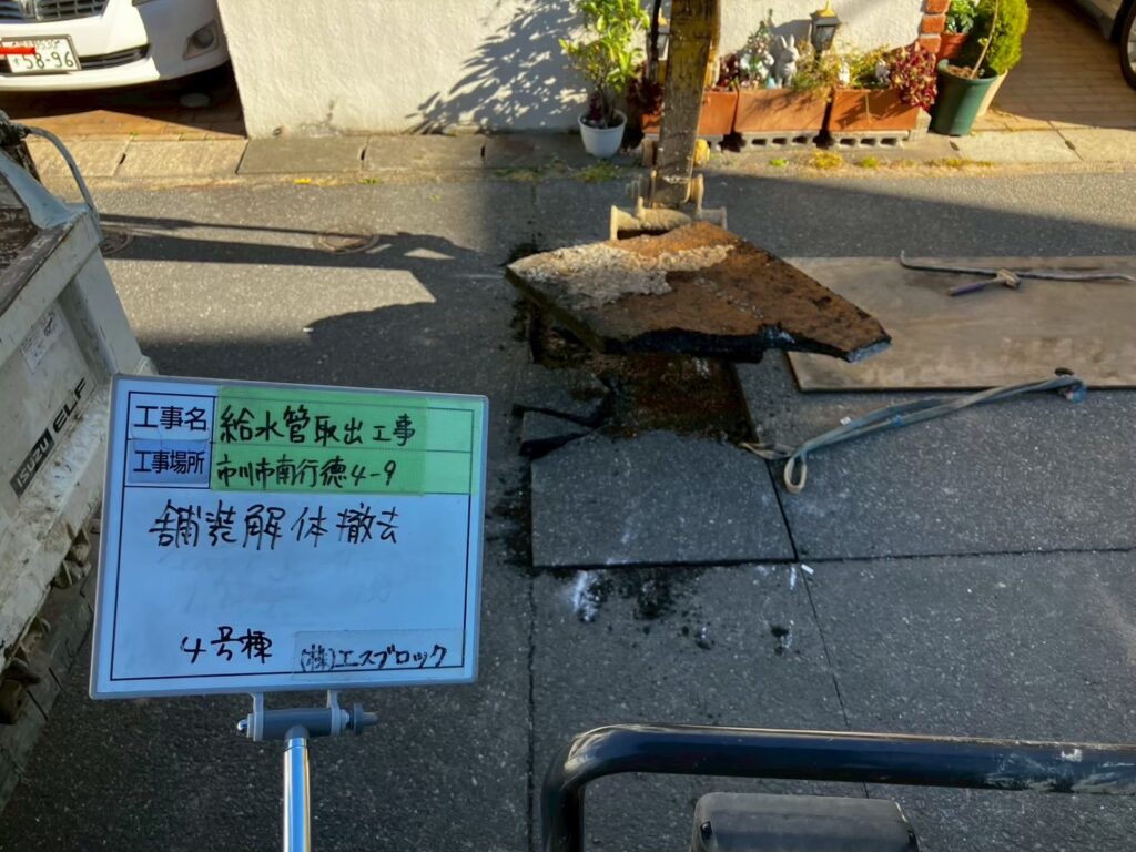 舗装を剥がして、掘って、つないで、洗って、最後は放水で徹底洗浄。