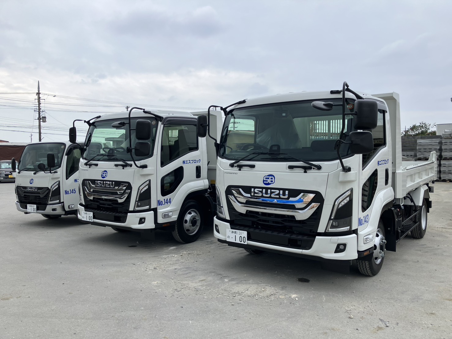 エスブロック沖縄支店に、4tダンプ2台・3tダンプ1台が新しく納車されました🚛✨
